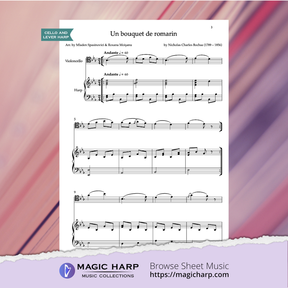 Un Bouquet de romarin by N. Ch. Bochsa arranged for cello and harp